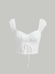 Domina las tendencias con la Blusa Corta de escote cruzado y detalle fruncido. El encaje y el estilo entrelazado realzan tu elegancia. Una prenda esencial que combina a la perfección moda y versatilidad para cualquier ocasión.
