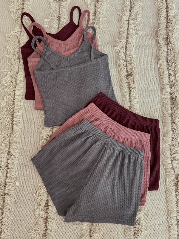 Un conjunto de camiseta de tirantes y shorts en color sólido. Ideal para relajarse en casa o dormir, con comodidad y estilo.